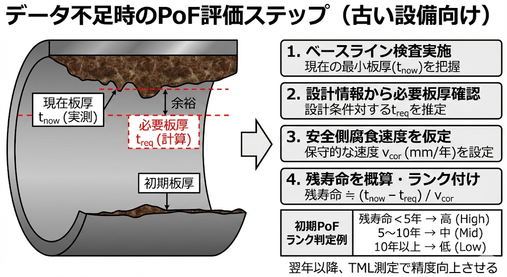 板厚データがほとんど無い古い設備でも、以下のステップで PoF を仮置きできます。