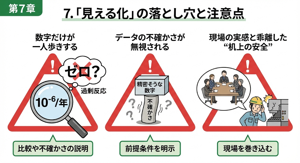 リスクを数字で示せるようになる一方で、次のような落とし穴もあります。