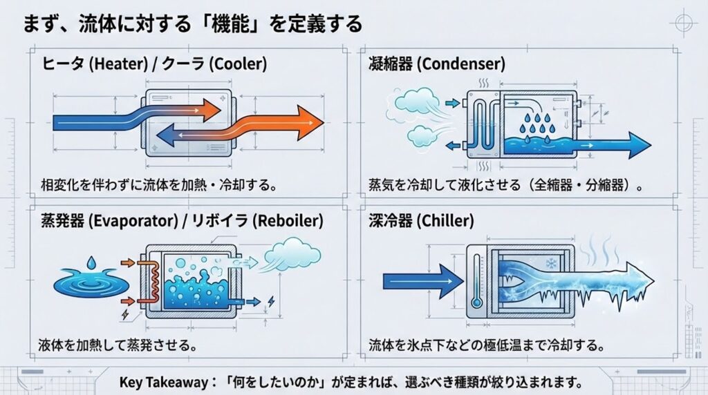 • ヒータ/クーラ:相変化を伴わない加熱・冷却