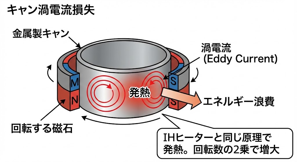 この発熱は、モーターの動力を無駄に消費します(キャン損失)。