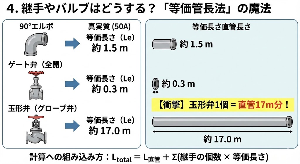 4. 継手やバルブはどうする?「等価管長法」の魔法