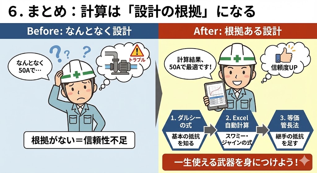 この3ステップをExcelシート化しておけば、一生使える武器になります。ぜひ、ご自身の担当プラントの配管で一度計算してみてください。