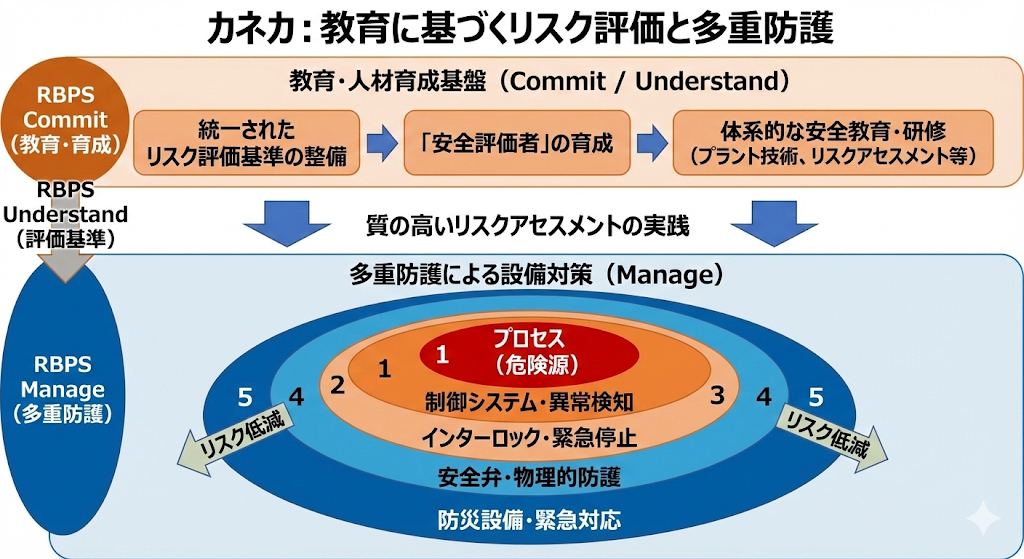 - 安全教育と事例の継続的な振り返り(ダイセル「温故創新」、カネカ研修)